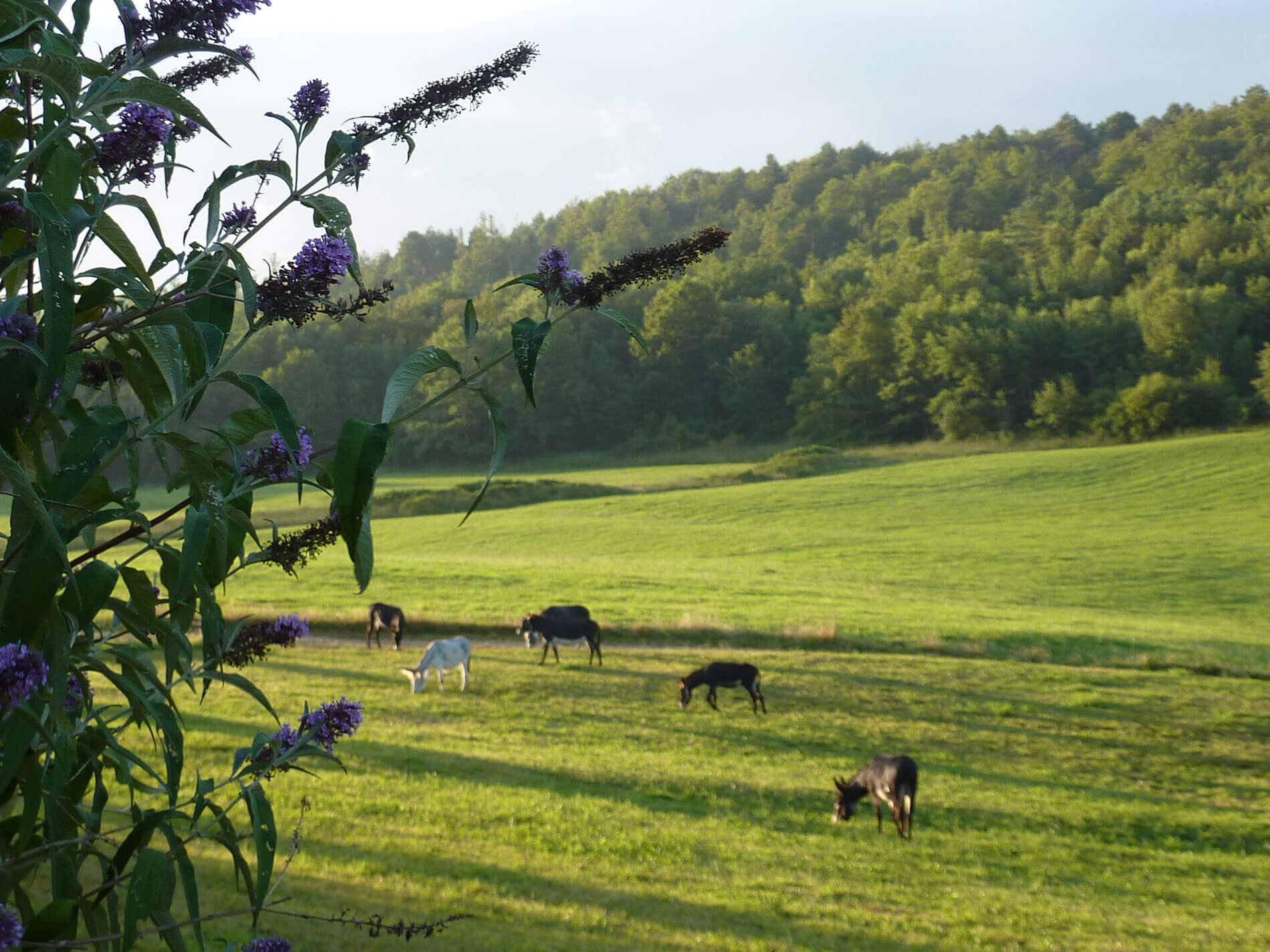 Manaska nous a offert un havre de paix et de vie idéal pour revenir au présent pendant cette retraite automnale. Ânes, vaches et chats ont été des alliés précieux pendant ce long silence. Les levers et couchers de soleil dans la salle de méditation et sur les collines alentours m’ont ravie. Le travail dans le jardin prolifique, les repas simples et frais pris en silence et la compagnie de belles personnes m’ont requinquée.