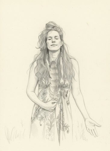 Artiste du vivant, guérisseuse et initiatrice, passeuse de sacré et de sagesses depuis plus de quinze ans, initiée auprès de femmes et hommes médecine d’Amérique du Nord et du Sud,